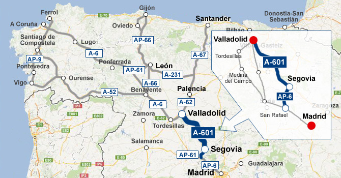 A través de la autovía A-601 existe la posibilidad de hacer la ruta Valladolid - Madrid utilizando, una vez finalizada la autovía A-601 en Segovia, la carretera de circunvalación SG-20 y la AP-61 para una vez finalizada esta autopista enlazar con la AP-6. Haciendo de este itinerario el más rápido y económico en unir la capital de España con la ciudad de Valladolid.